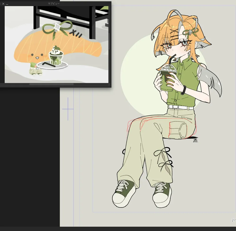 - 手とかスニーカーとか、描いてる途中は左右で形違ってたので、そこの修正はできたのは良かった